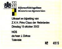 - Royal wedding – HRH Prince Willem Alexander en Maxima (2002) (Camera operator)